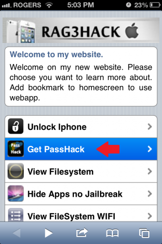 3.Once on the website, scroll down until you see Get PassHack, and tap it.
