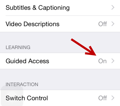 3. Next, head to Accessibility -> Guided Access. Make sure that the feature is turned on before you continue. Please note that when you activate the Guided Access feature, only one app can be used during that session. Any type of application can be used, but it must be launched before Guided Access is active.