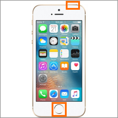 1.Press and hold the Home button and the Power/Lock button on the top right part of the device. Wait for the iPhone logo to show up.iPhone 5 Power and Home Buttons