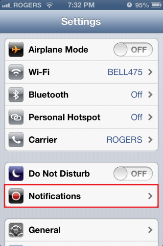 2.In the Settings application, tap on Notifications.