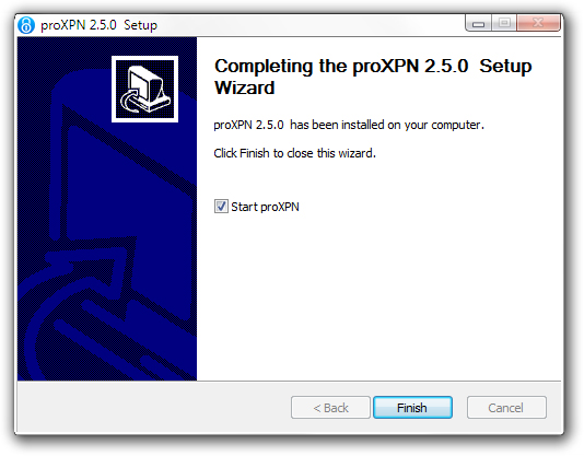 3. After the file is downloaded, run the installer. When the installer is finished, check the “Start proXPN” box, and click Finish.