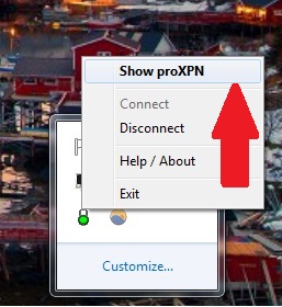 6. Right click the proXPN icon and select Show proXPN from the drop menu.