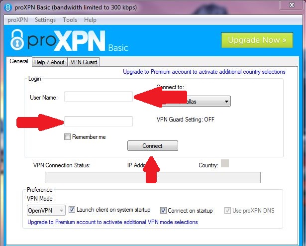 7. Now a window should pop up where you will input your account details. Use the account information from step 4. After you entered your credentials, click Connect.