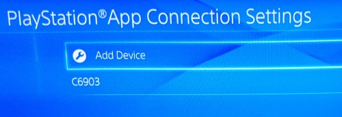 2. On your PS4, go to Settings > Playstation App Connection Settings > Add Device. The PS4 should show a code on the screen.
