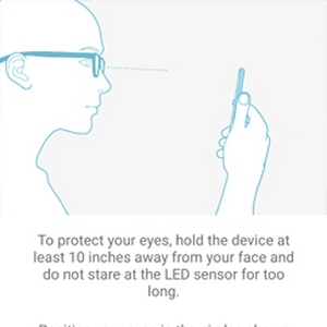 11.Position your eyes in alignment with your phone’s front camera. Hold your device 25 to 35 centimeters away from your screen. Follow the prompts on your screen. You will be asked to open your eyes wide while looking that the front camera. Wait for the scan to complete at 100%.