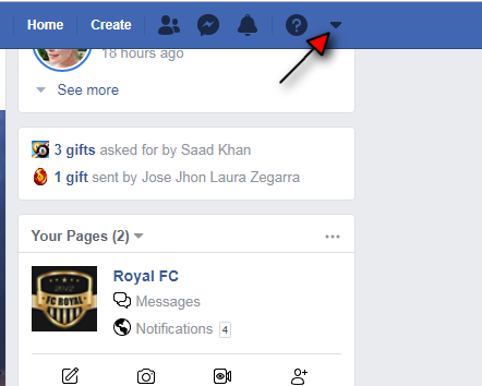2. Click the downward arrow(top-right corner) on your main Facebook page.