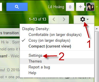 2. Click on the small gear icon at the top right of the window to expand the menu and choose Settings from the list.