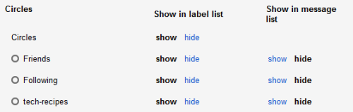 6. The Circles section will be available if you are using Google+. Just like System labels, the circles can only be set to Show or Hide. To manage the circles, you need to go to the Google+ page.