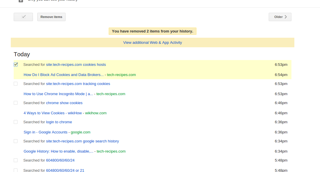 4.It looks like you can also delete items, but only a few at a time. There is no way to select all records on a page or records going back all the way in time. Google, of course, uses that information for business purposes to make its advertising more valuable. Therefore, it is not going to let you delete all of it.