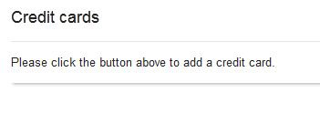 5. Once the card is removed, you can come back to the Payment methods to verify the deletion. In my case, I have only one credit card so the list will be empty. There is a message which reads Please click the button above to add a credit card.