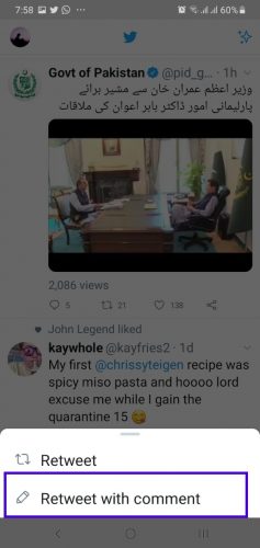 Retweeting with Comments on Twitter (Android)