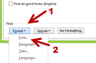 5. Now, you should notice an extra format filter under the search box. If you want to search for all texts in the chosen format, leave the search box empty, and click Find Next.