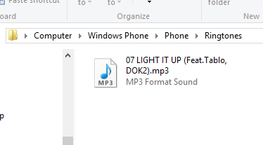 1. First, you will need to copy your custom tone to the phone memory. Connect your phone to the computer, and copy your file to the Ringtones folder. Please note that the file must be placed in the correct folder, or it cannot be used as your phone’s custom tone.